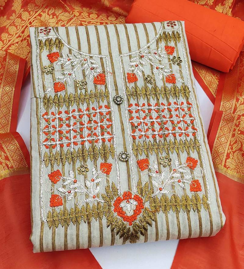 | Product Name | Beige Cotton Embroidered Dress Material | |