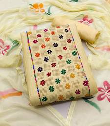 Beige cotton embroidered dress material unstitched