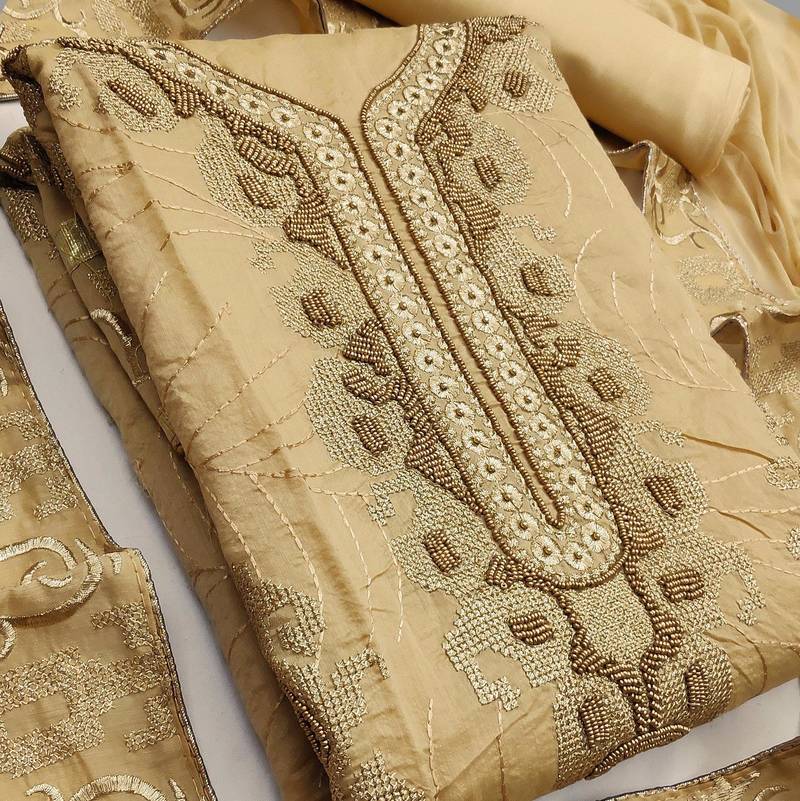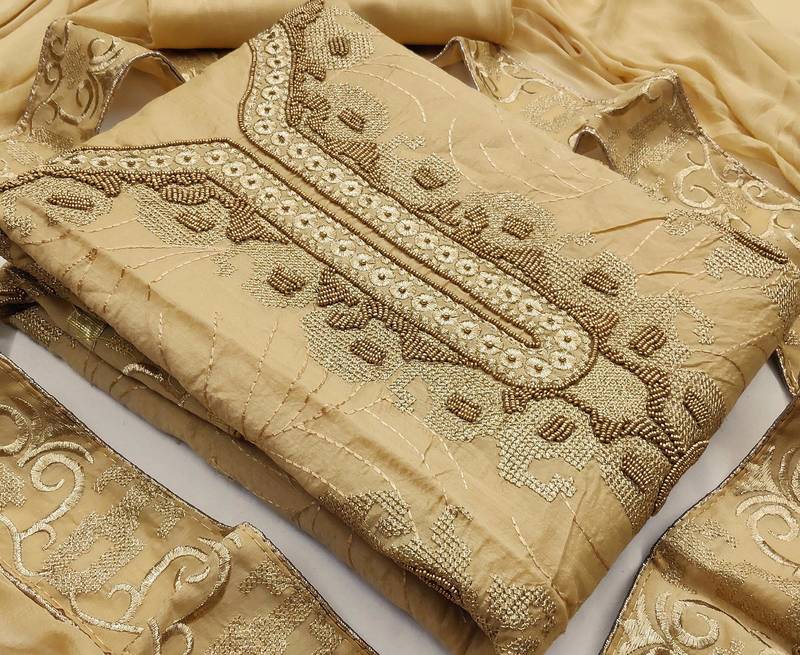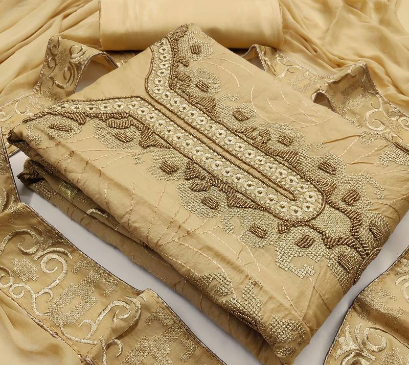| Product Name | Beige Chanderi Hand Embroidery Dress Material | |