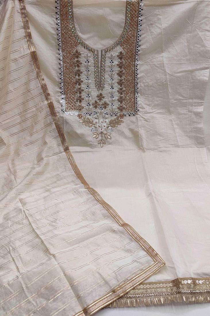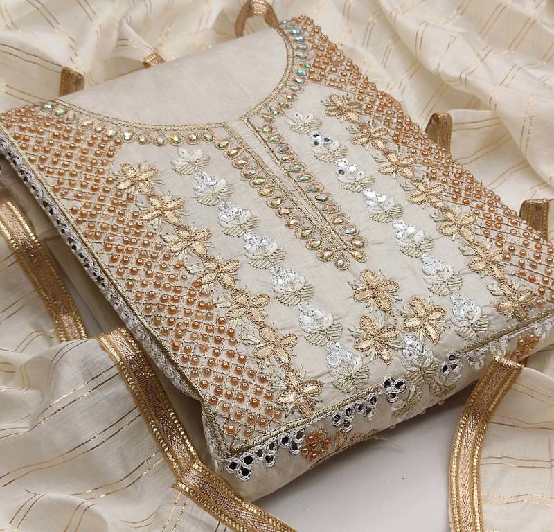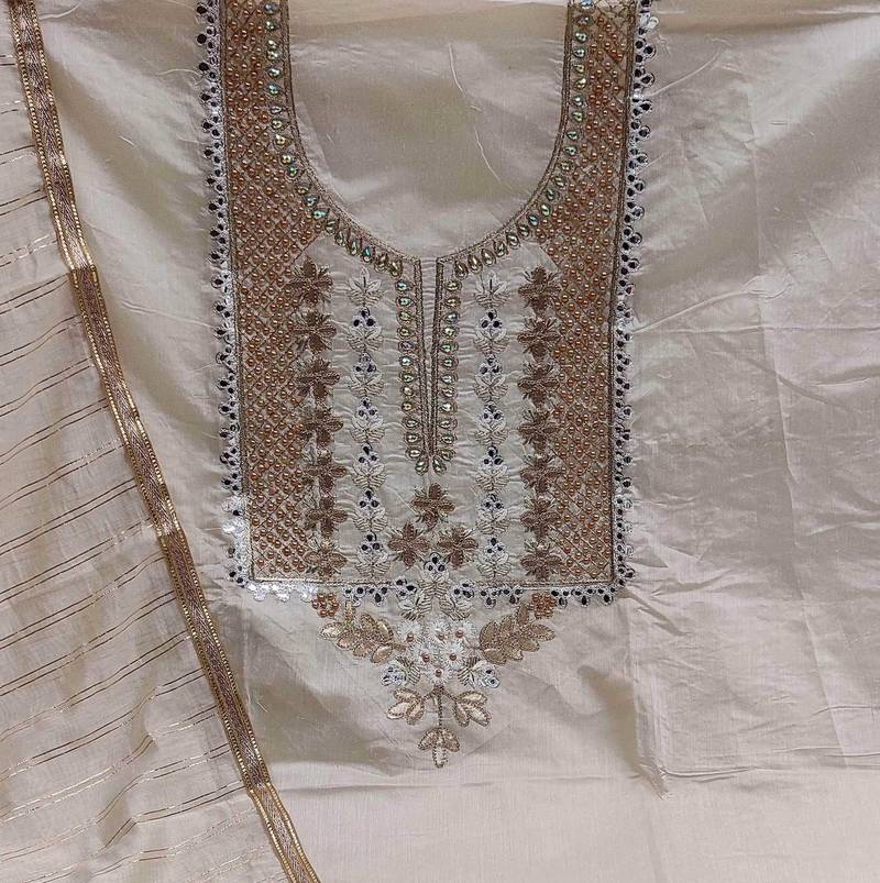 | Product Name | Beige Chanderi Hand Embroidery Dress Material | |