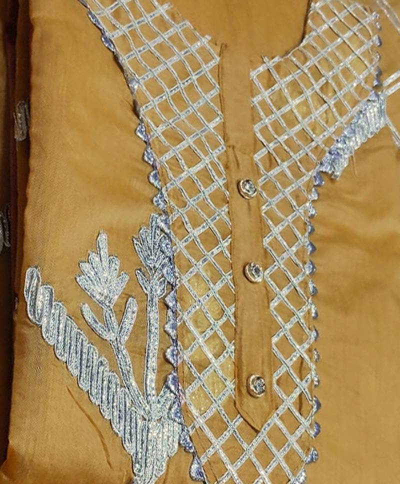 | Product Name | Beige Chanderi Hand Embroidery Dress Material | |