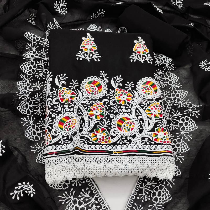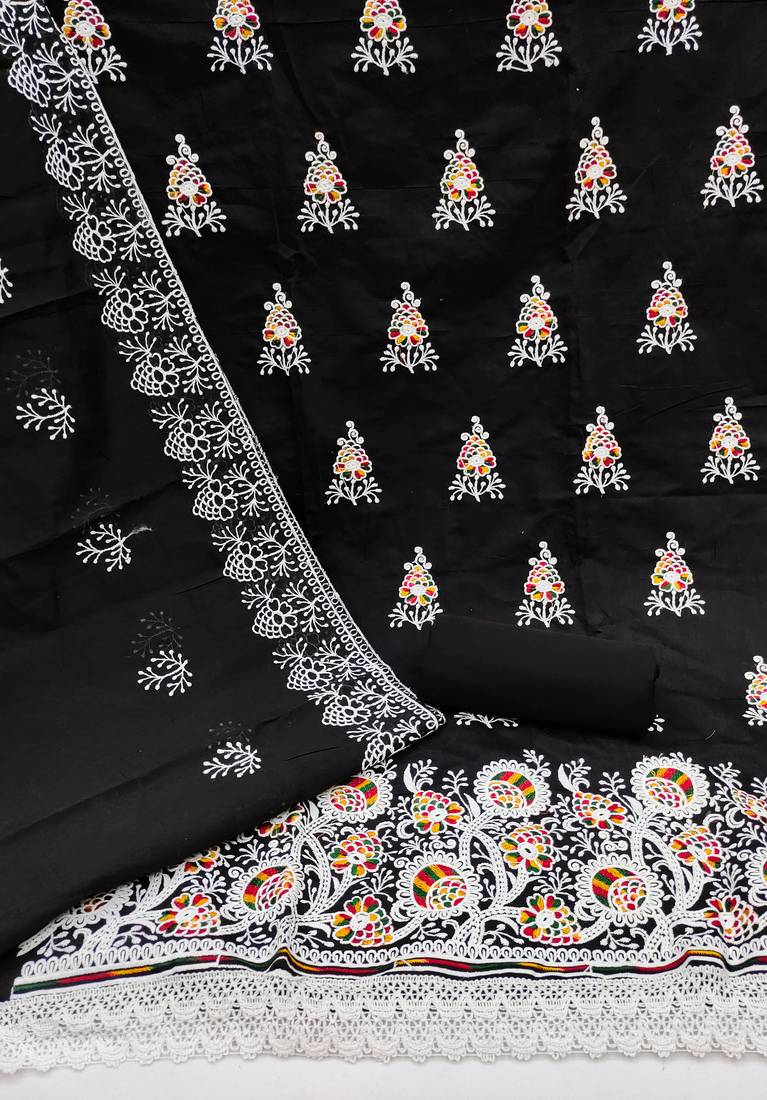 Black cotton embroidered dress material unstitched
