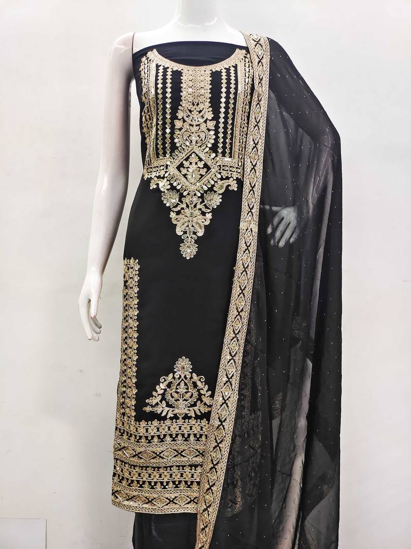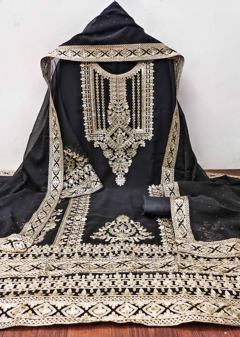 Black georgette embroidered dress material unstitched