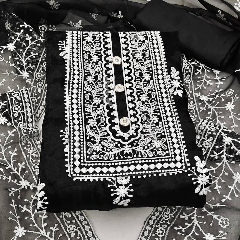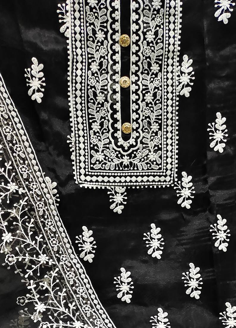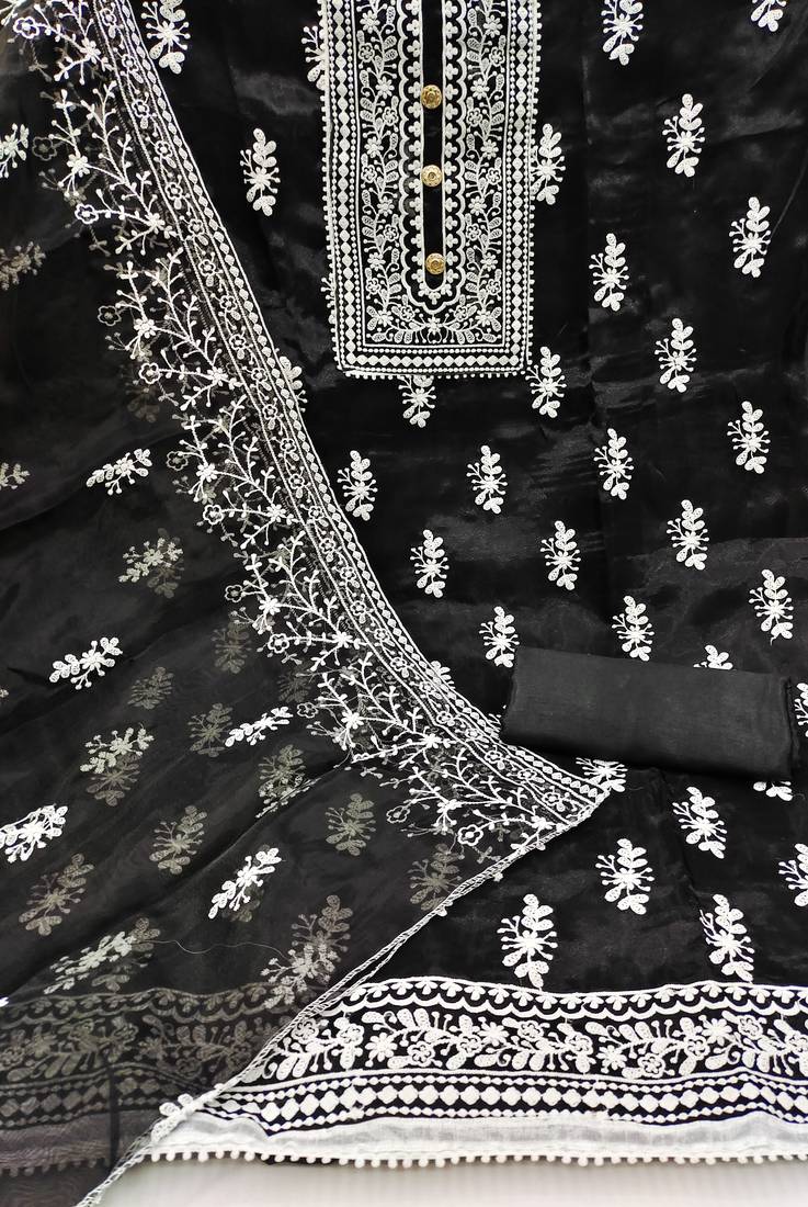 | Product Description | Heavy Thread Embroidery With Embroidered Dupatta Straight Style 1.80 Mtr Unstitched Dress Material Top Of Black Colour Organza Fabric With 2 Mtr Santoon As Lining Inner Fabric Also Including 2.00 Mtr Unstitched Bottom Material Of Black Colour Santoon Fabric With 2.00 Mtr Dupatta Of Black Colour Organza Fabric |
