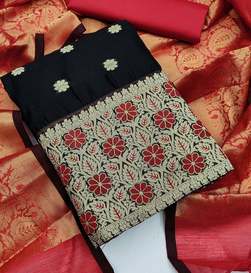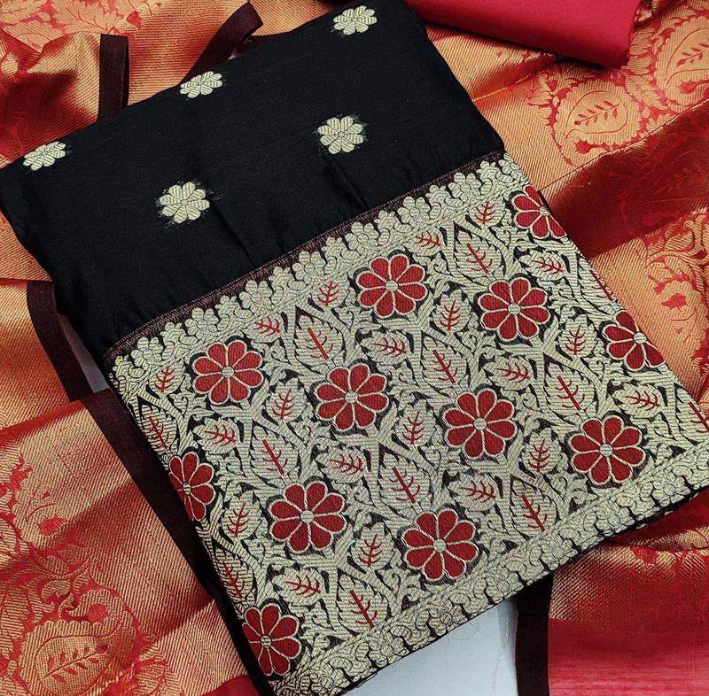 Black jacquard woven dress material unstitched