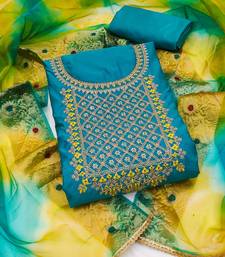 Blue chanderi embroidered dress material unstitched