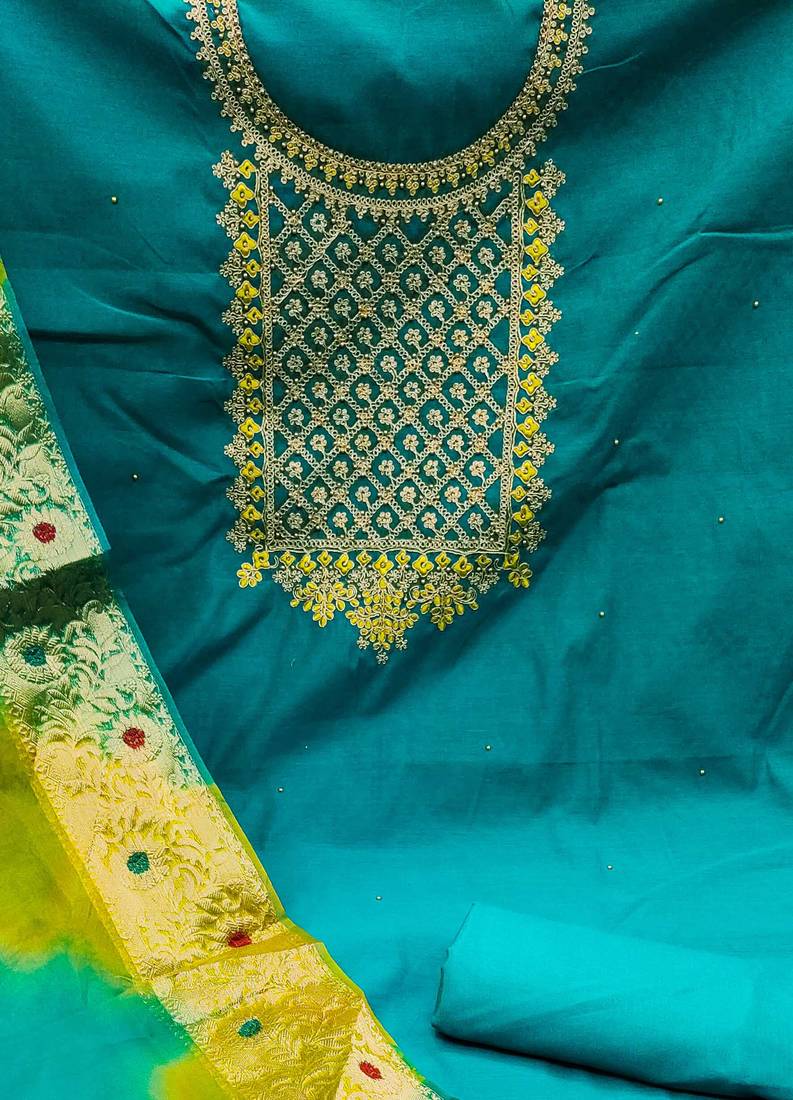 | Product Name | Blue Chanderi Embroidered Dress Material | |