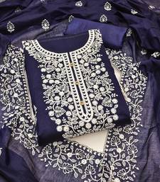 | Product Description | Heavy Thread Embroidery And Fancy Border With Embroidered Dupatta Straight Style 1.80 Mtr Unstitched Dress Material Top Of Blue Colour Chanderi Cotton Fabric With 2 Mtr Santoon As Lining Inner Fabric Also Including 3.60 Mtr Unstitched Bottom Material Of Navy Blue Colour Santoon Fabric With 2.10 Mtr Dupatta Of Navy Blue Colour Chanderi Cotton Fabric |
