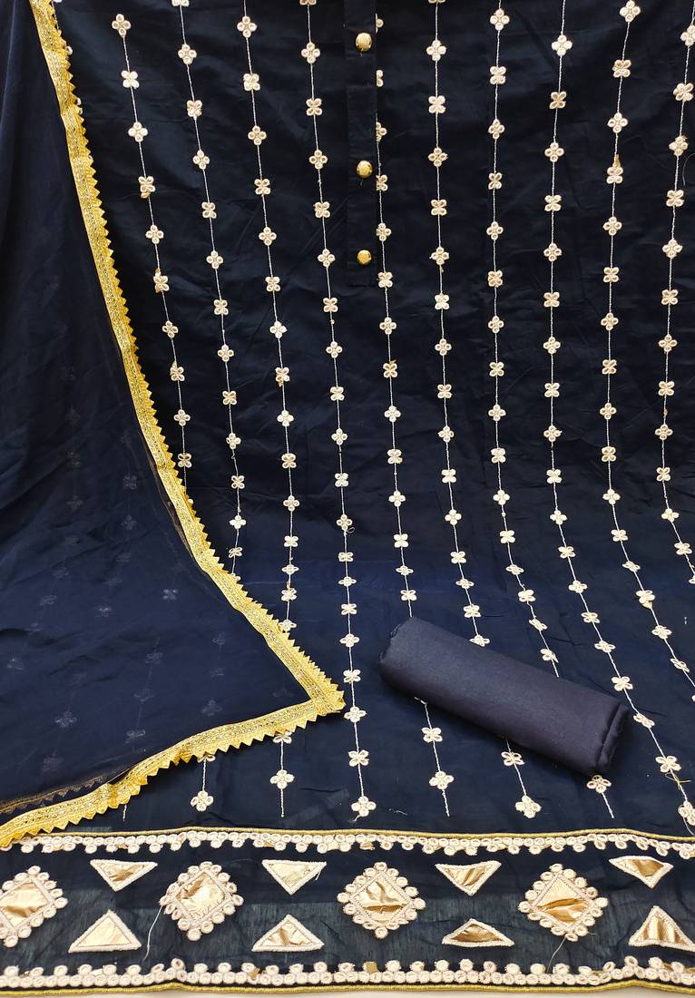 Blue cotton embroidered dress material unstitched