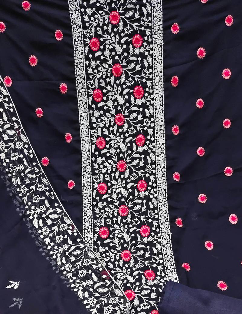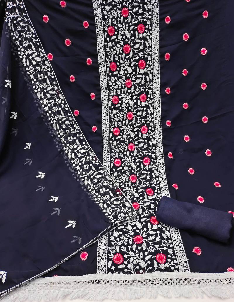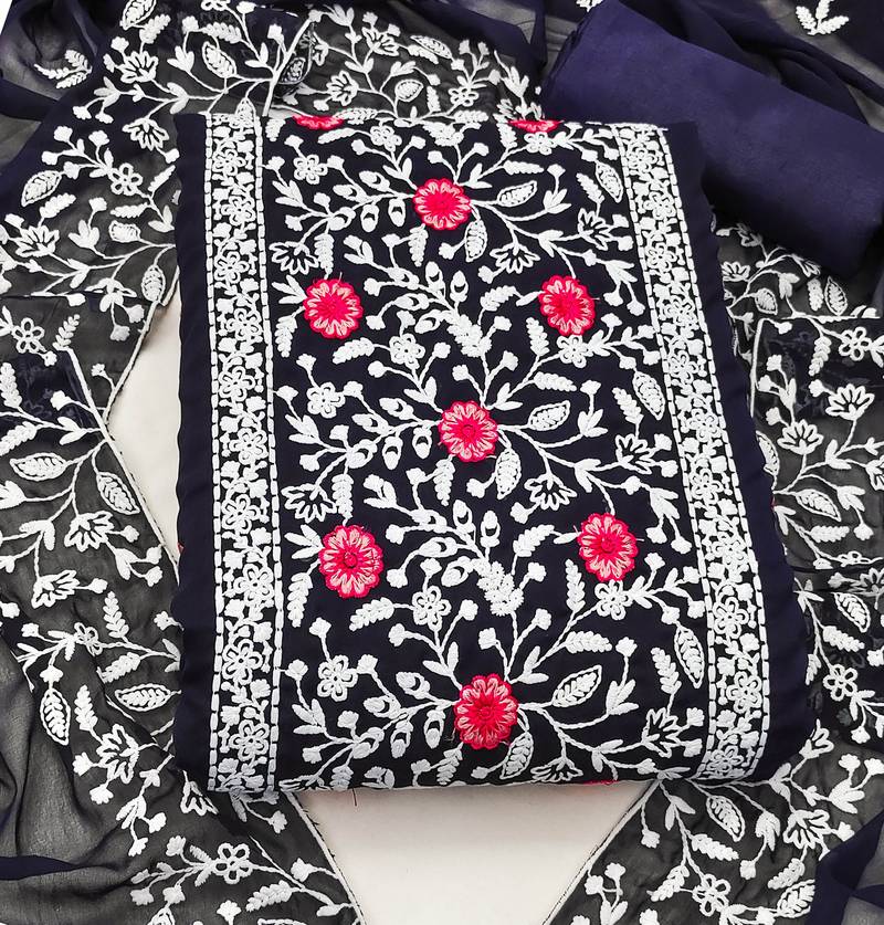 Blue georgette embroidered dress material unstitched