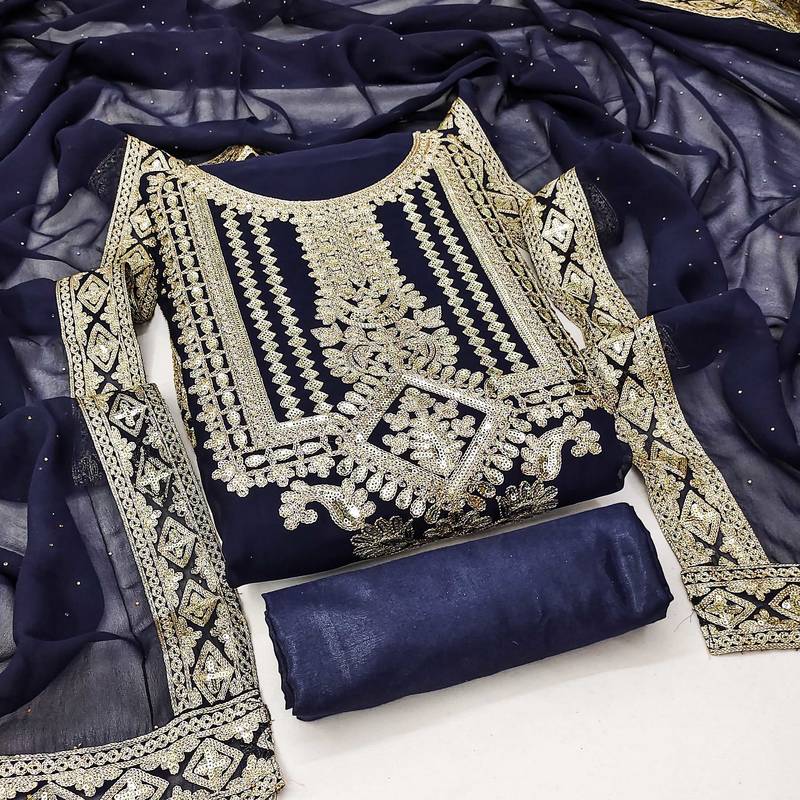 | Product Name | Blue Georgette Embroidered Dress Material | |