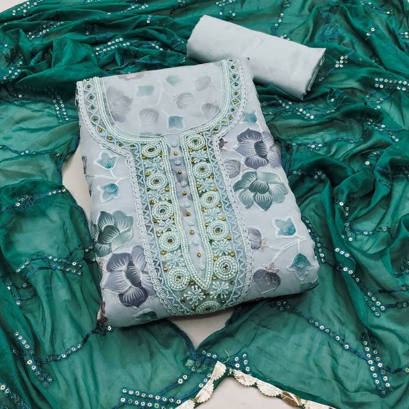 | Product Name | Blue Organza Embroidered Dress Material | |