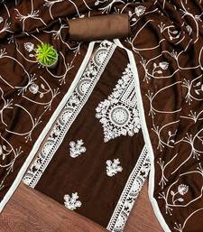 Brown silk blend embroidered dress material unstitched
