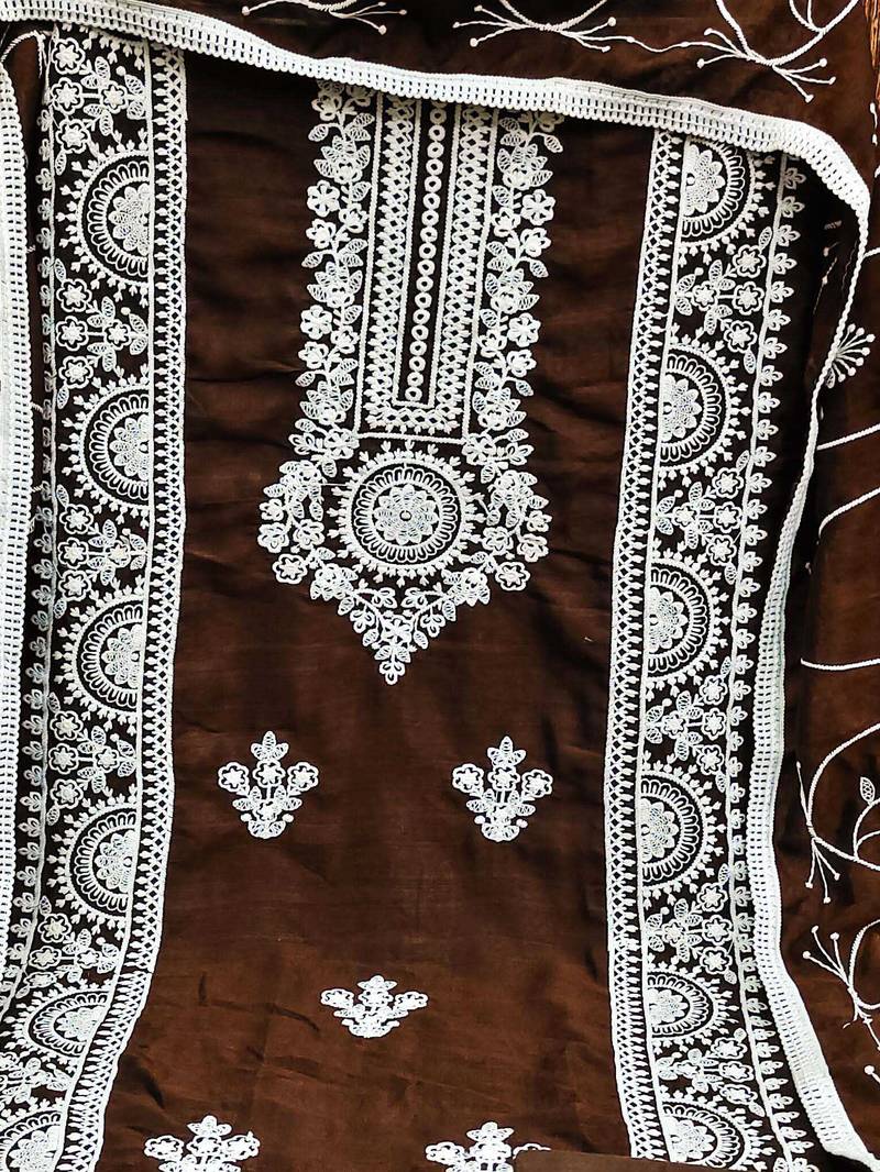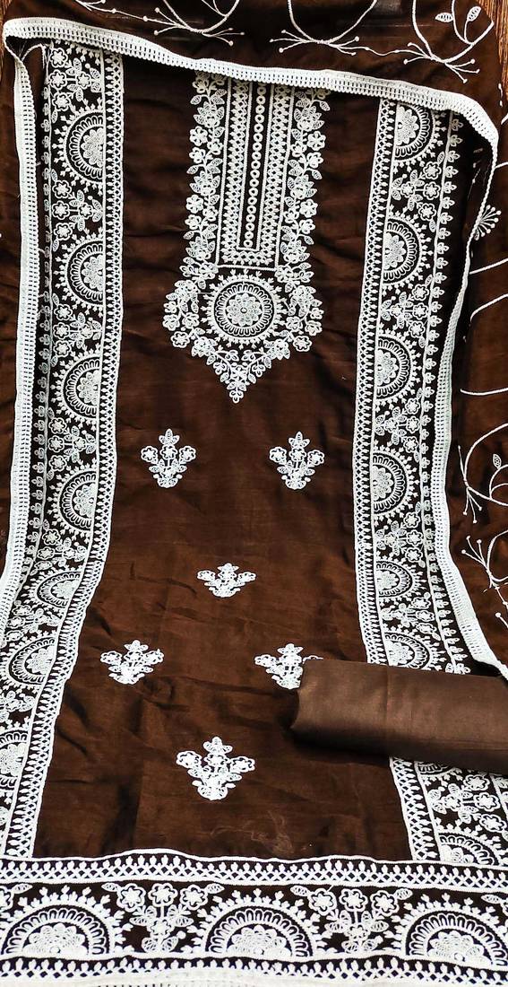 | Product Name | Brown Silk Blend Embroidered Dress Material | |