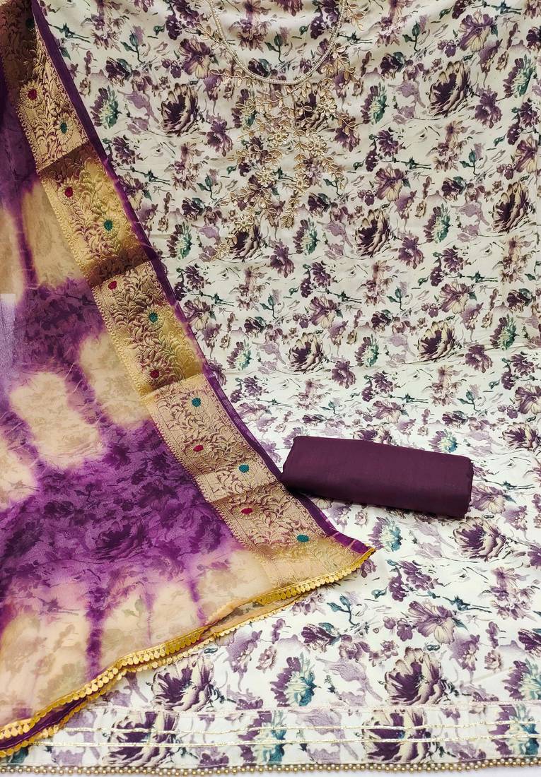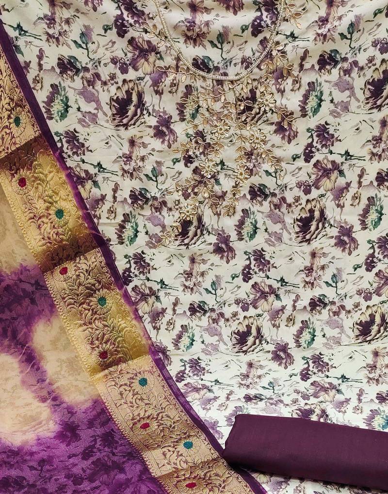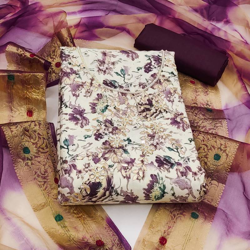 | Product Description | Appealing Handwork And Print Work With Fancy Weaving Work Dupatta Straight Style 1.95 Mtr Unstitched Dress Material Top Of Cream Colour Jam Cotton Fabric Also Including 2.50 Mtr Chudidar Style Bottom Piece Material Of Burgundy Colour Pure Cotton Fabric With 2.05 Mtr Dupatta Of Multi Colour Organza Jacquard Fabric |