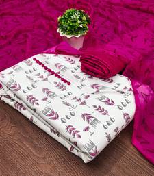 Cream cotton printed dress material unstitched
