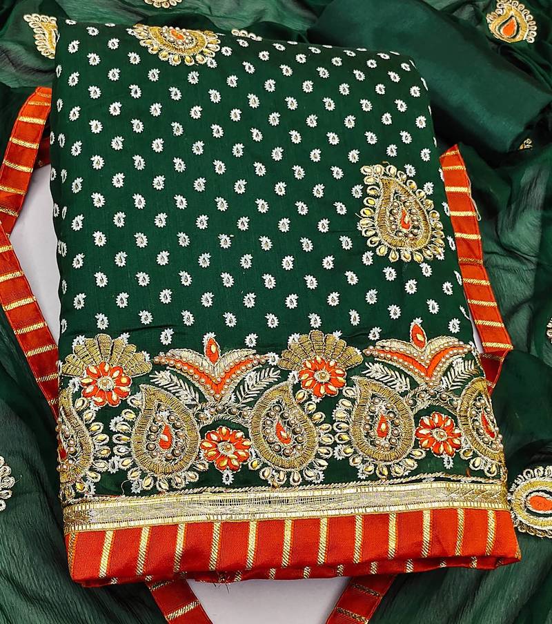 | Product Name | Green Chanderi Embroidered Dress Material | |