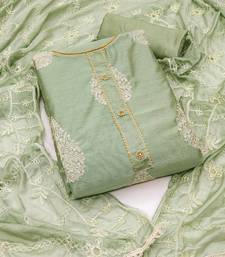Green chanderi embroidered dress material unstitched