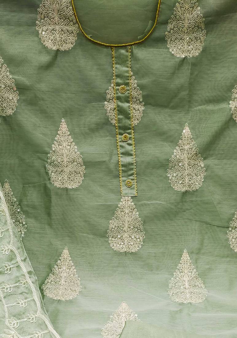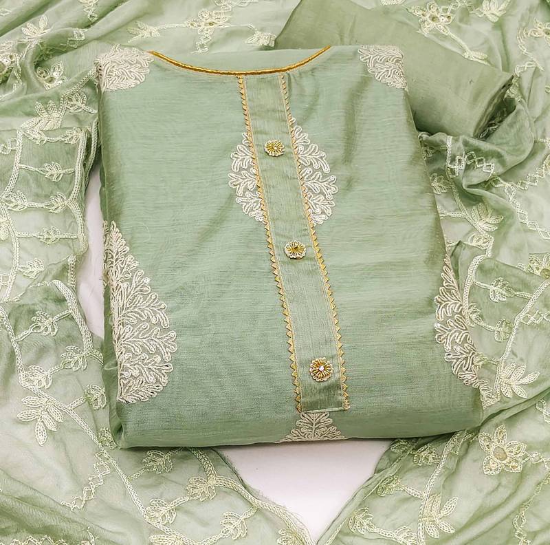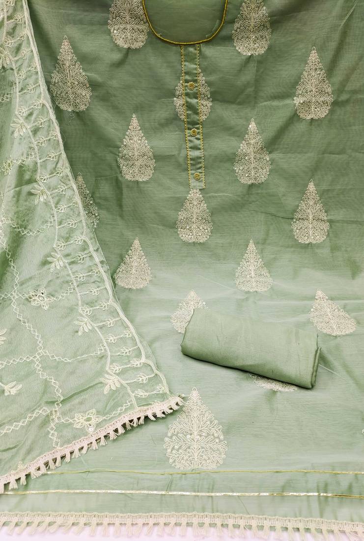 | Product Name | Green Chanderi Embroidered Dress Material | |
