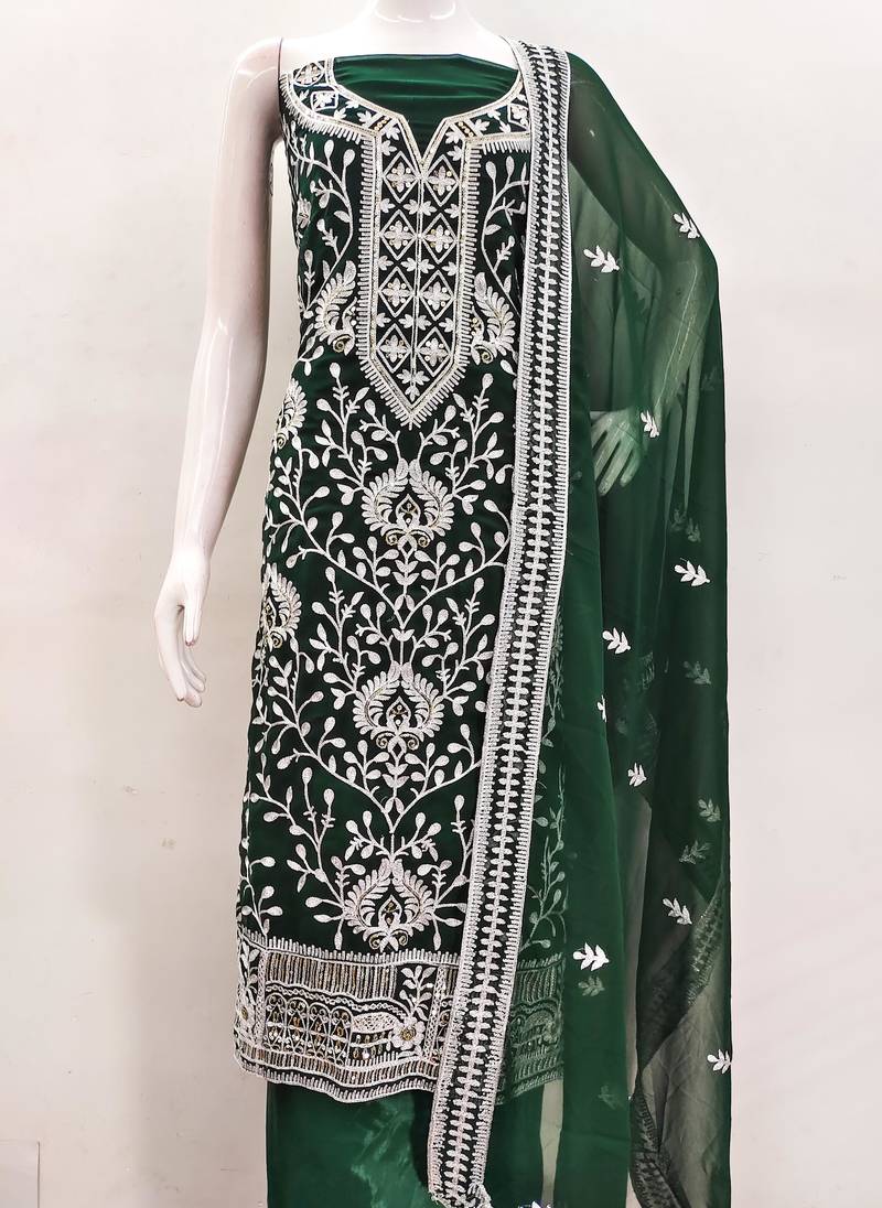 | Product Description | Heavy Thread Embroidery With Embroidered Dupatta Straight Style 2.10 Mtr Unstitched Dress Material Top Of Green Colour Georgette Fabric With 2 Mtr Santoon As Lining Inner Fabric Also Including 3.60 Mtr Unstitched Bottom Material Of Green Colour Santoon Fabric With 2.10 Mtr Dupatta Of Green Colour Georgette Fabric |