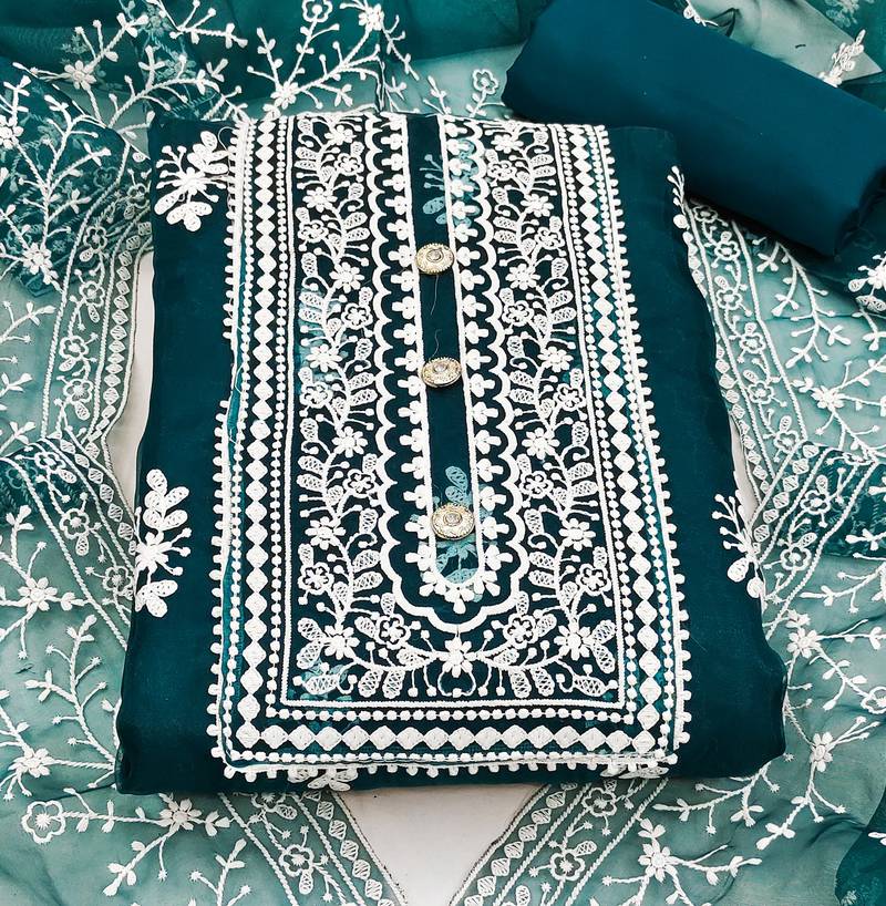 | Product Description | Heavy Thread Embroidery With Embroidered Dupatta Straight Style 1.80 Mtr Unstitched Dress Material Top Of Rama Colour Organza Fabric With 2 Mtr Santoon As Lining Inner Fabric Also Including 2.00 Mtr Unstitched Bottom Material Of Rama Colour Santoon Fabric With 2.00 Mtr Dupatta Of Rama Colour Organza Fabric |