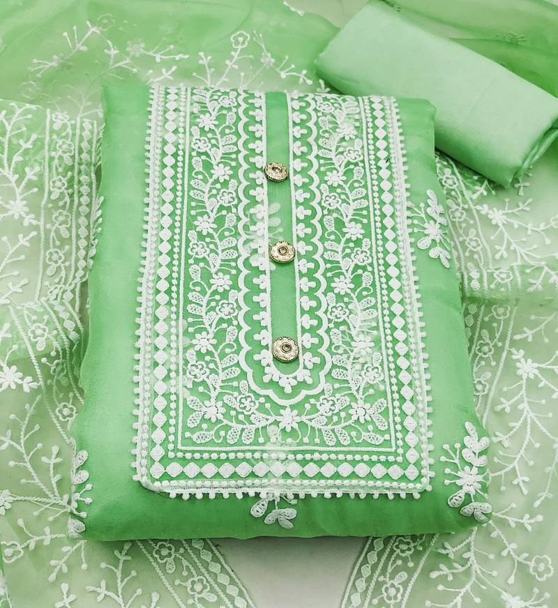 | Product Description | Fancy Heavy Thread Embroidery With Embroidered Dupatta Straight Style 1.80 Mtr Unstitched Dress Material Top Of Pista Colour Organza Fabric With 2 Mtr Santoon As Lining Inner Fabric Also Including 2.00 Mtr Unstitched Bottom Material Of Pista Colour Santoon Fabric With 2.00 Mtr Dupatta Of Pista Colour Organza Fabric |