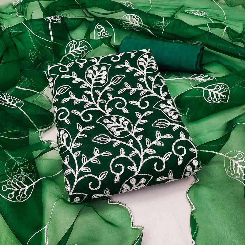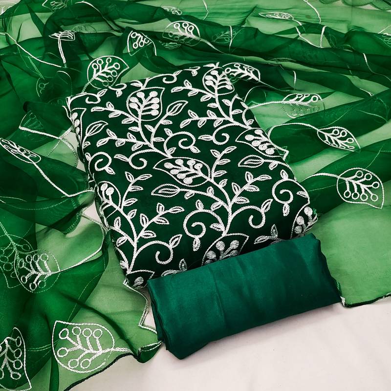 | Product Description | Heavy Thread Chain Stitched Embroidery And Fancy Border With Embroidered Dupatta Straight Style 1.80 Mtr Unstitched Dress Material Top Of Green Colour Organza Fabric With 2 Mtr Santoon As Lining Inner Fabric Also Including 2.00 Mtr Unstitched Bottom Material Of Green Colour Santoon Fabric With 2.00 Mtr Dupatta Of Green Colour Organza Fabric |