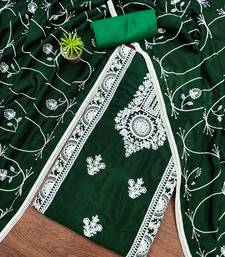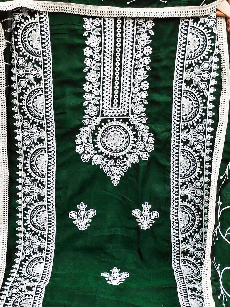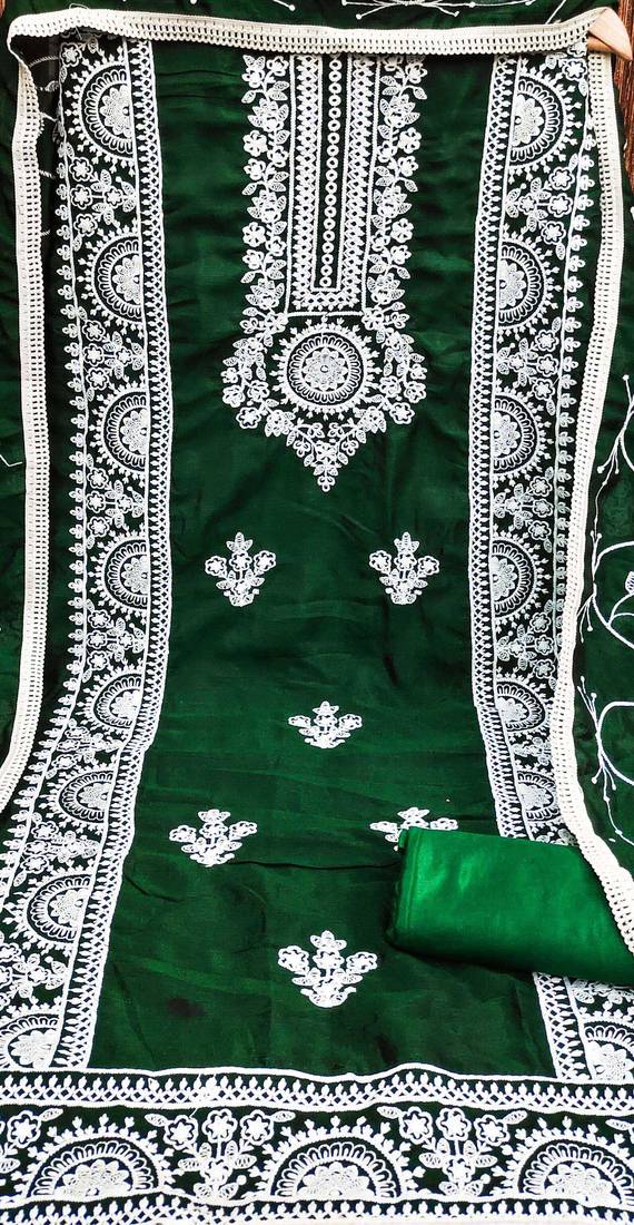 Green silk blend embroidered dress material unstitched