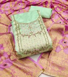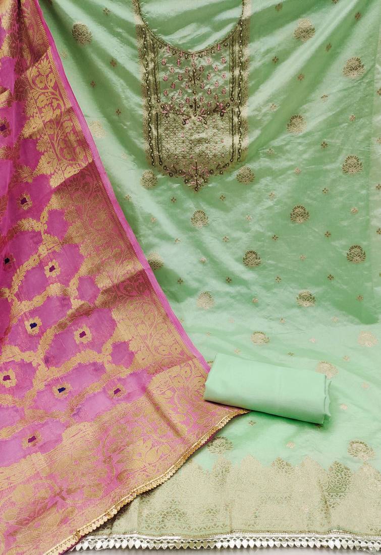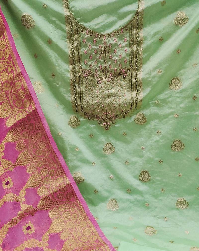 Green banarasi hand embroidery dress material unstitched