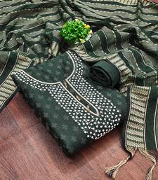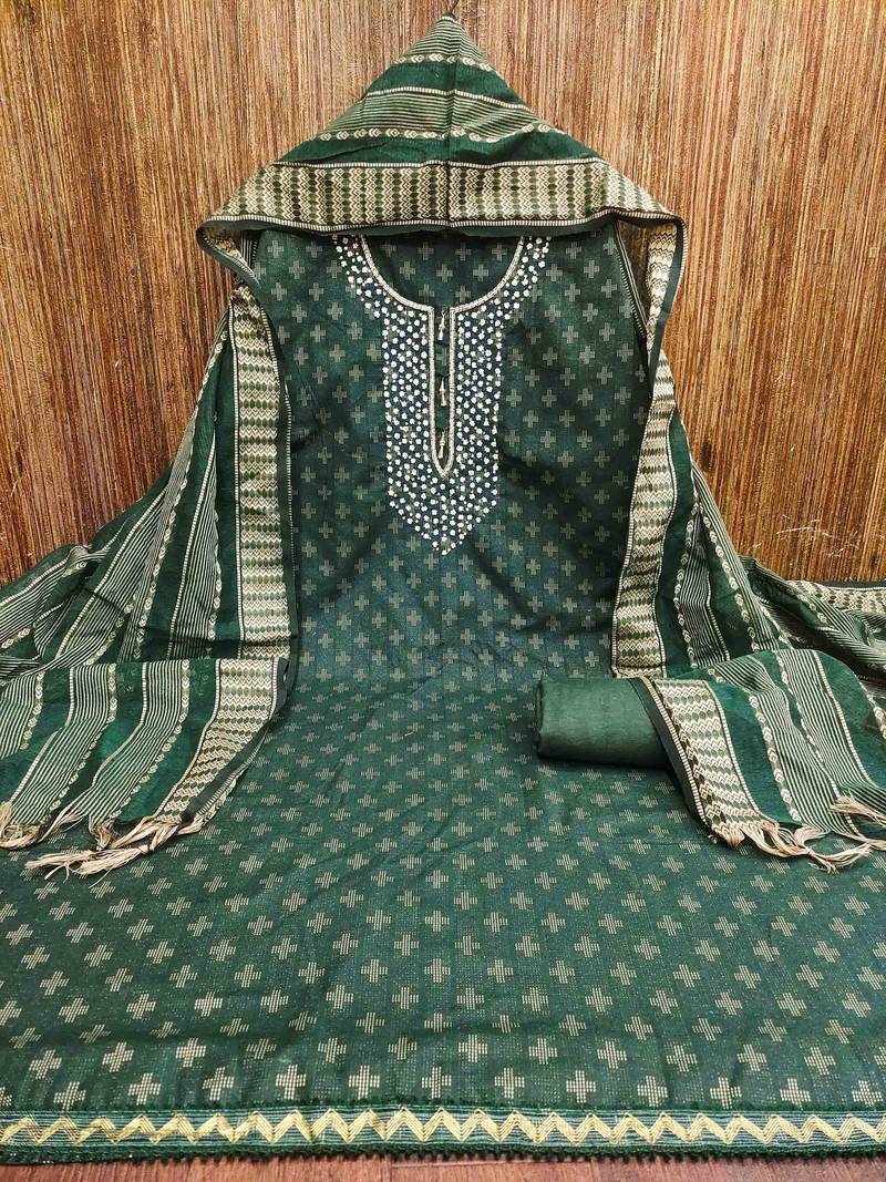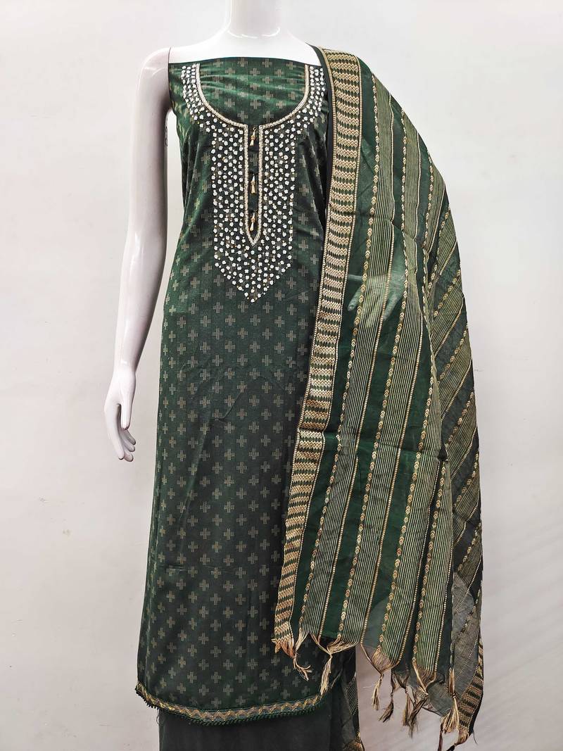 Green cotton hand embroidery dress material unstitched