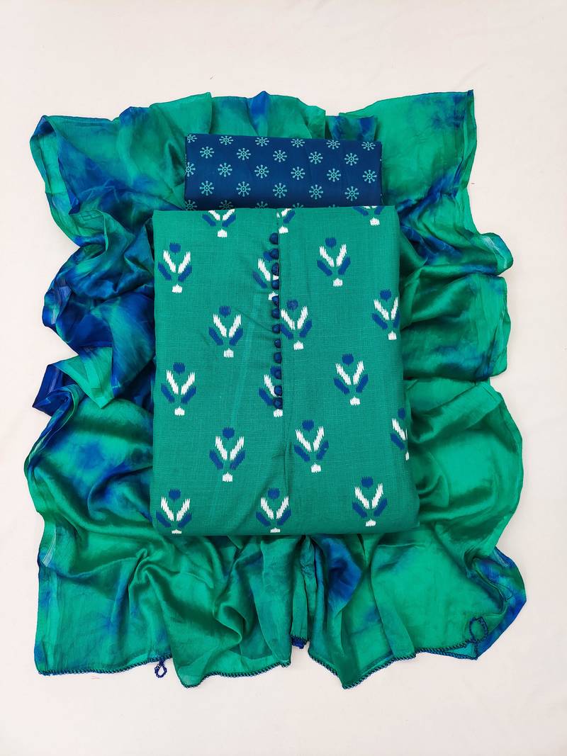 | Product Description | Appealing Print Straight Style 1.80 Mtr Unstitched Dress Material Top Of Green Colour Slub Cotton Fabric Also Including 2.00 Mtr Chudidar Style Bottom Piece Material Of Blue Colour Cotton Fabric With 2.00 Mtr Dupatta Of Multi Colour Chinnon Fabric |