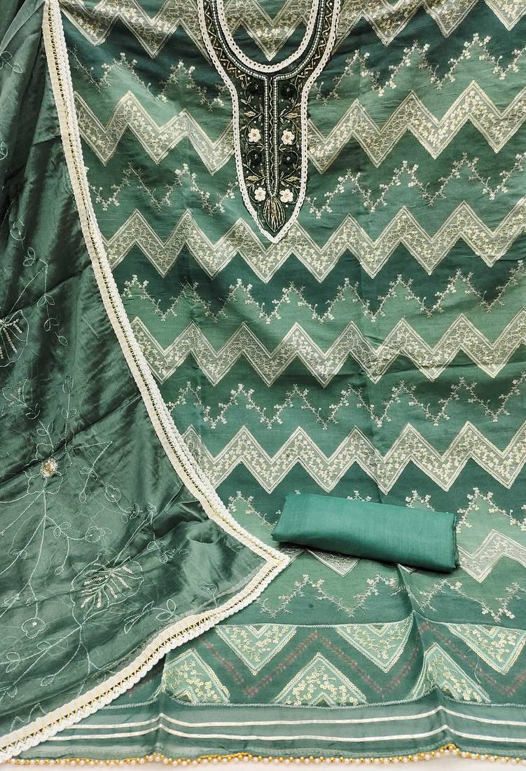 | Product Description | Sequin Work With Position Print And Hand Work With Heavy Embroidered Dupatta Work Straight Style 2.00 Mtr Unstitched Dress Material Top Of Green Colour Oragnza Fabric With 2 Mtr Heavy Santoon As Lining Inner Fabric Also Including 3.80 Mtr Unstitched Bottom Material Of Green Colour Heavy Santoon Fabric With 2.00 Mtr Dupatta Of Green Colour Nazmin Fabric |
