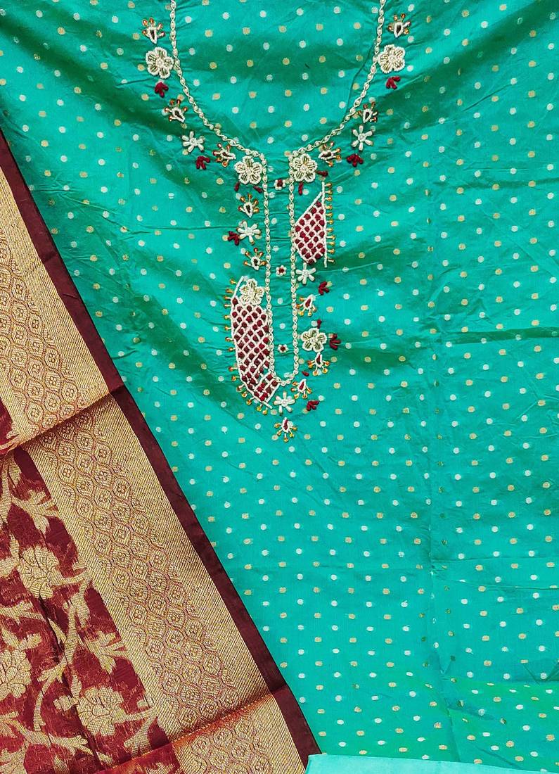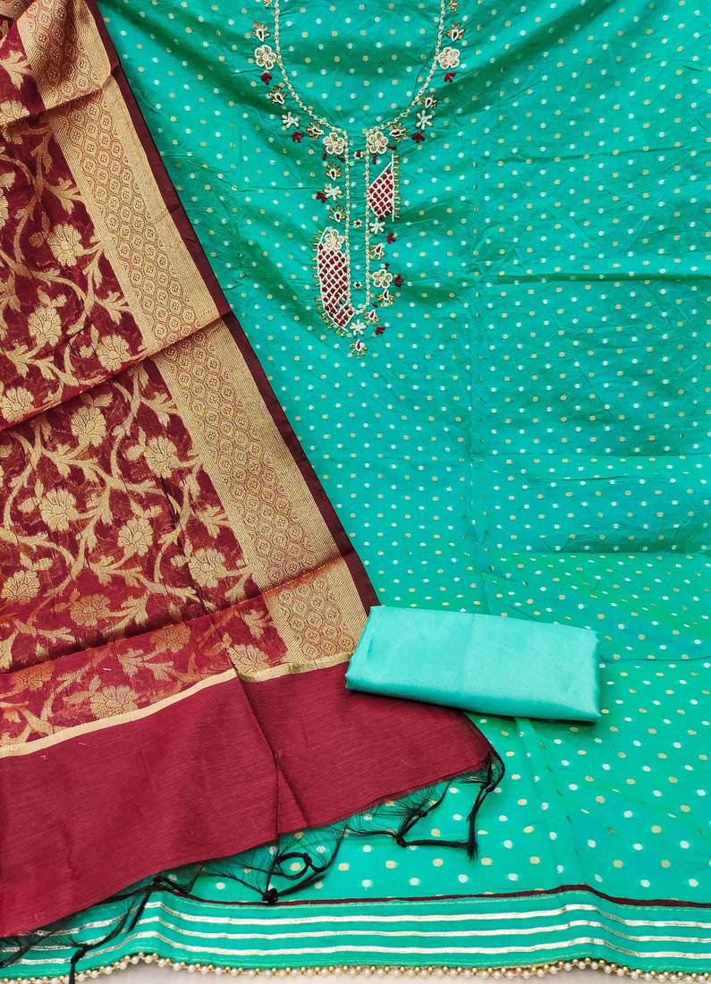 | Product Description | Weaving Handwork And Border With Fancy Banarasi Dupatta Straight Style 2.00 Mtr Unstitched Dress Material Top Of Green Colour Modal Butti Cotton Fabric With 2 Mtr Dull Santoon As Lining Inner Fabric Also Including 3.80 Mtr Unstitched Bottom Material Of Green Colour Dull Santoon Fabric With 2.00 Mtr Dupatta Of Maroon Colour Banarasi Fabric |