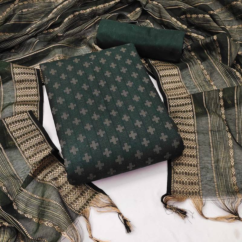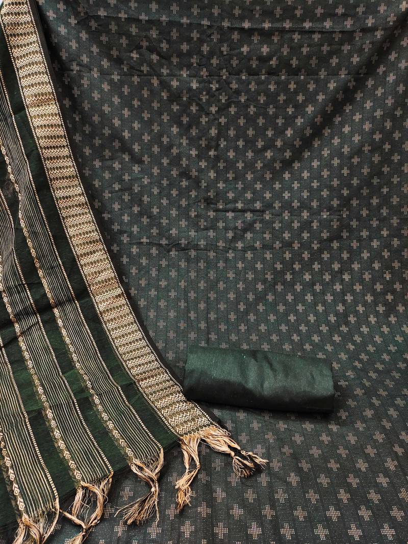 Green cotton woven dress material unstitched