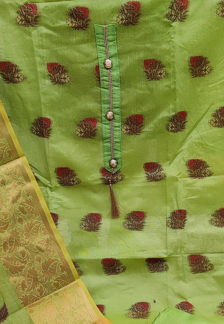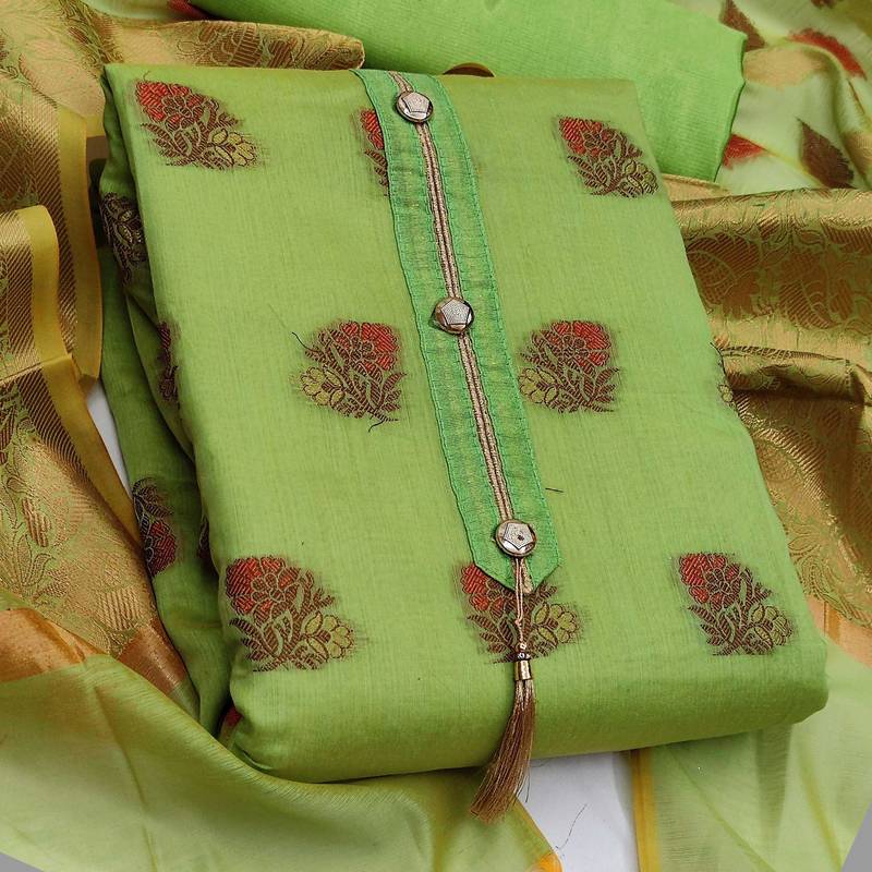 Green jacquard woven dress material unstitched
