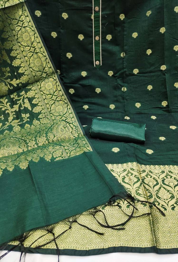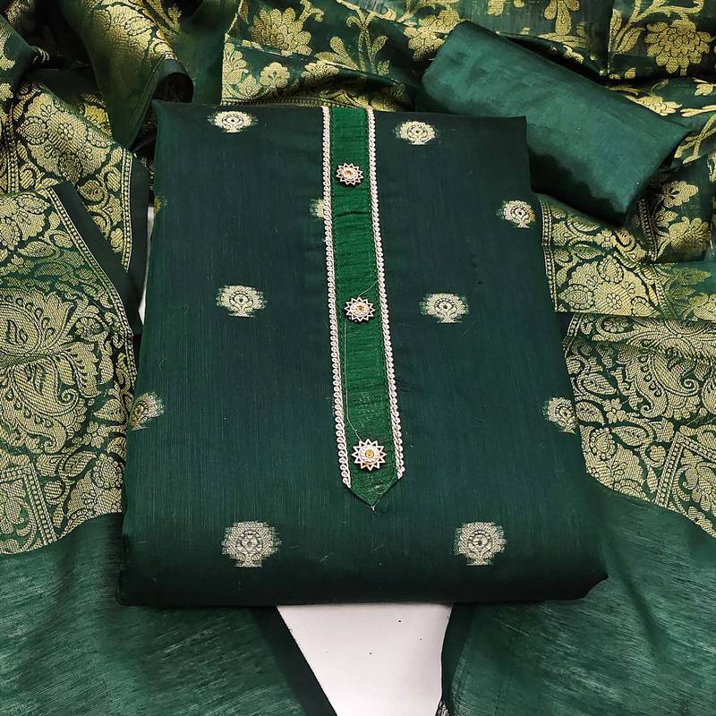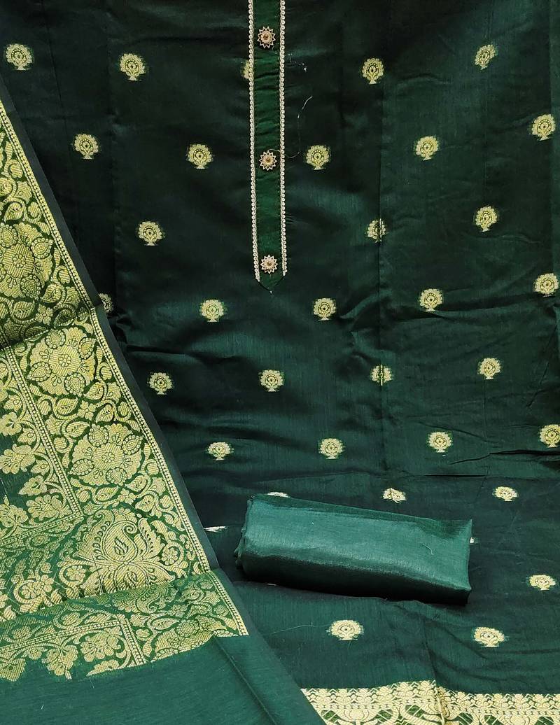 | Product Description | Weaving Straight Style 1.90 Mtr Unstitched Dress Material Top Of Green Colour Banarasi Jacquard Fabric With 2 Mtr Santoon As Lining Inner Fabric Also Including 2.10 Mtr Unstitched Bottom Material Of Green Colour Santoon Fabric With 2.00 Mtr Dupatta Of Green Colour Banarasi Jacquard Fabric |