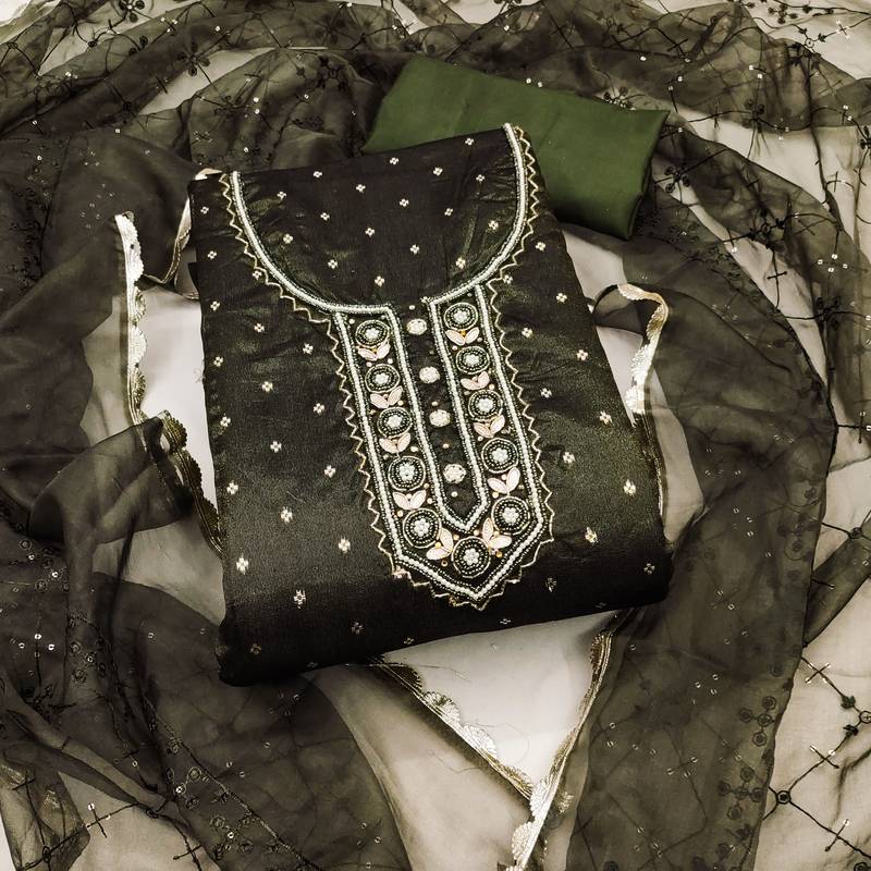 Green organza woven dress material unstitched