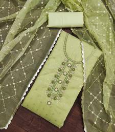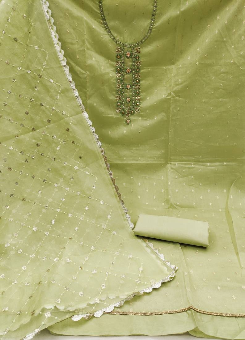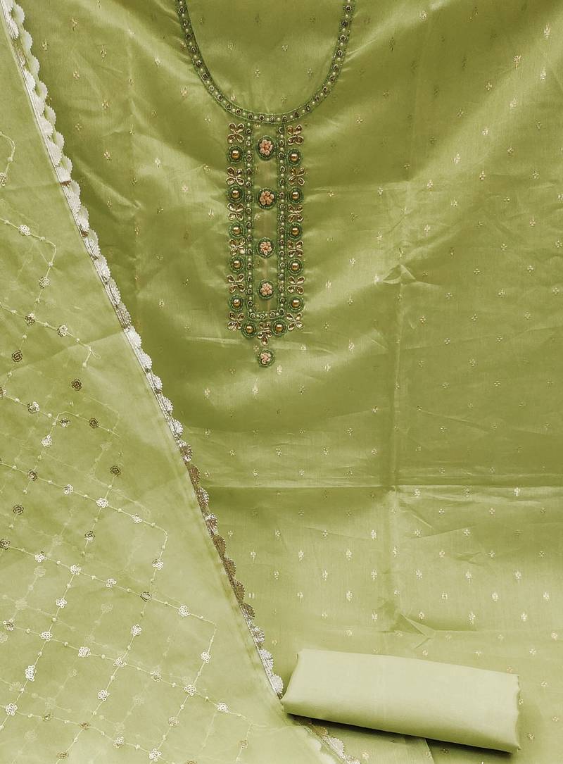 | Product Description | Weaving Work With Heavy Neck Handwork And Border With Fancy Sequin Dupatta Work Straight Style 2.00 Mtr Unstitched Dress Material Top Of Pista Green Colour Organza Jacquard Fabric With 2 Mtr Dull Santoon As Lining Inner Fabric Also Including 3.60 Mtr Unstitched Bottom Material Of Green Colour Dull Santoon Fabric With 2.05 Mtr Dupatta Of Green Colour Organza Fabric |