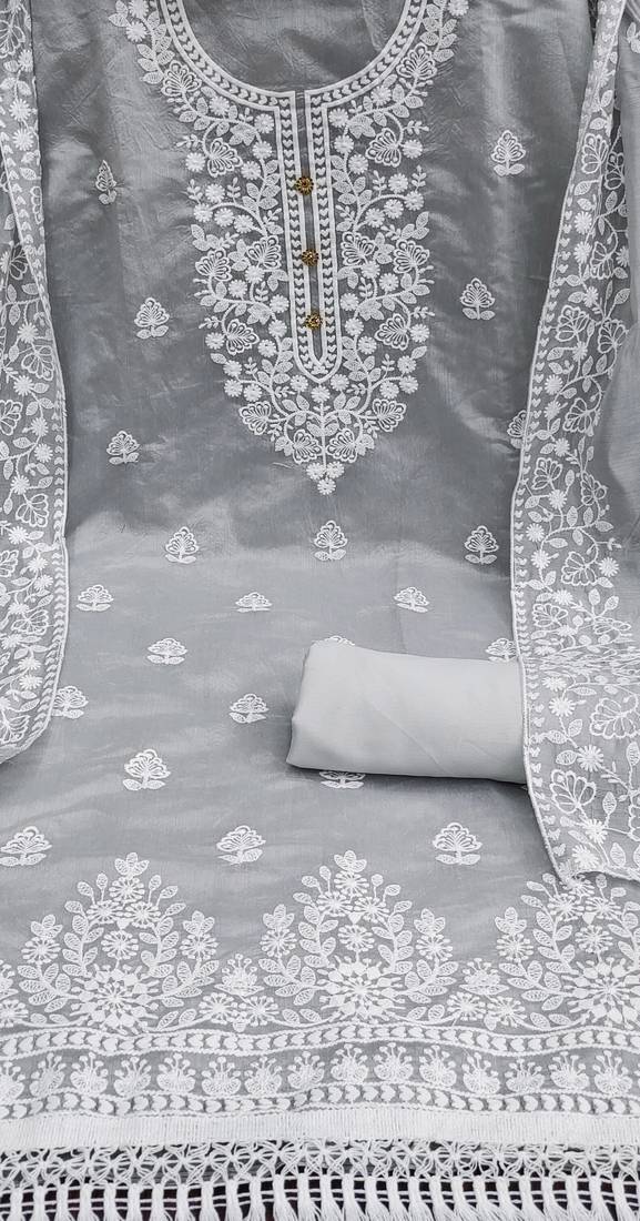 | Product Description | Heavy Thread Embroidery And Fancy Border With Embroidered Dupatta Straight Style 1.80 Mtr Unstitched Dress Material Top Of Grey Colour Chanderi Cotton Fabric With Inner Lining Fabric Of 1.60 Mtr Also Including 2.00 Mtr Chudidar Style Bottom Piece Material Of Grey Colour American Crape Fabric With 2.00 Mtr Dupatta Of Grey Colour Chanderi Cotton Fabric |