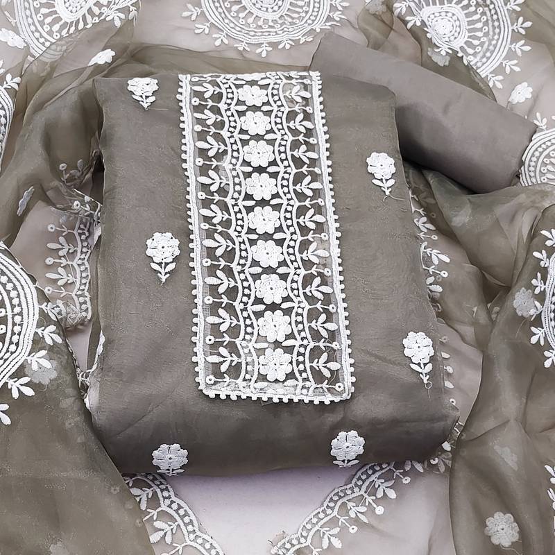 | Product Name | Grey Organza Embroidered Dress Material | |