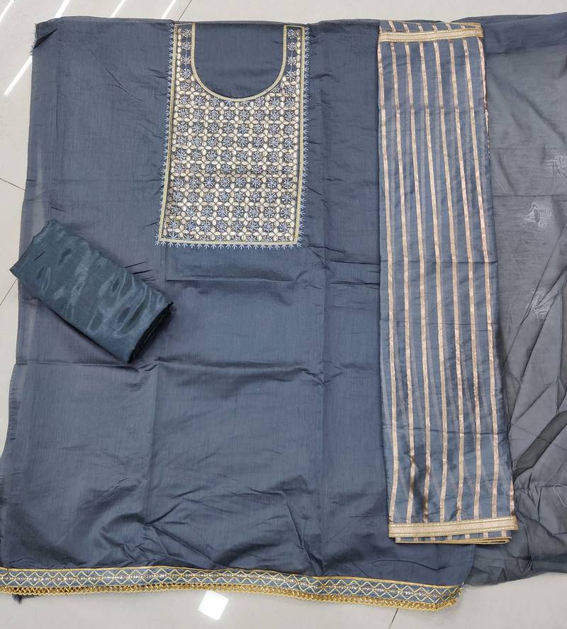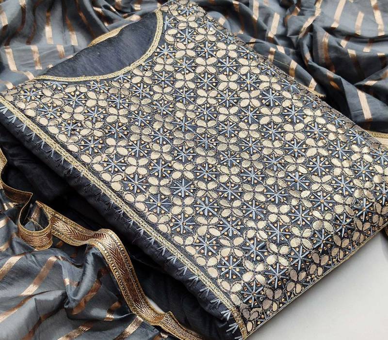 | Product Name | Grey Chanderi Hand Embroidery Dress Material | |