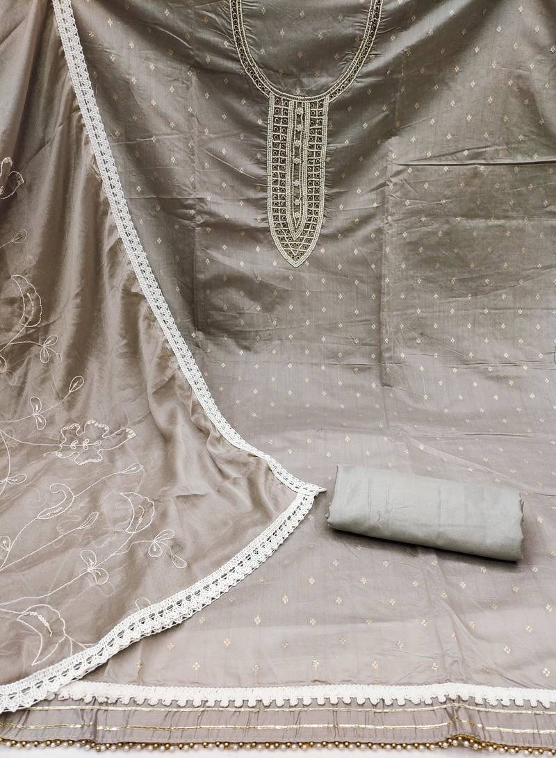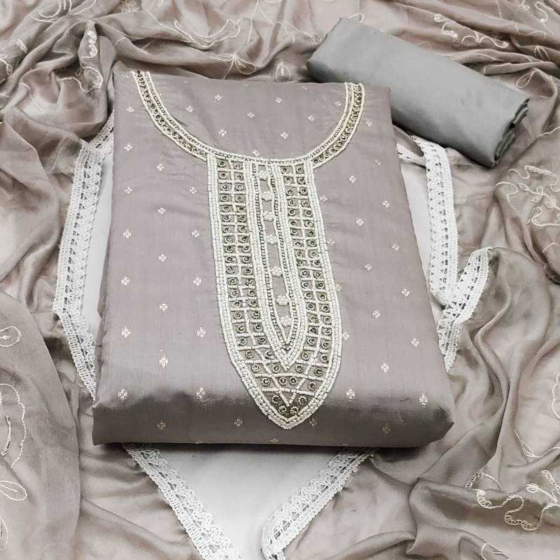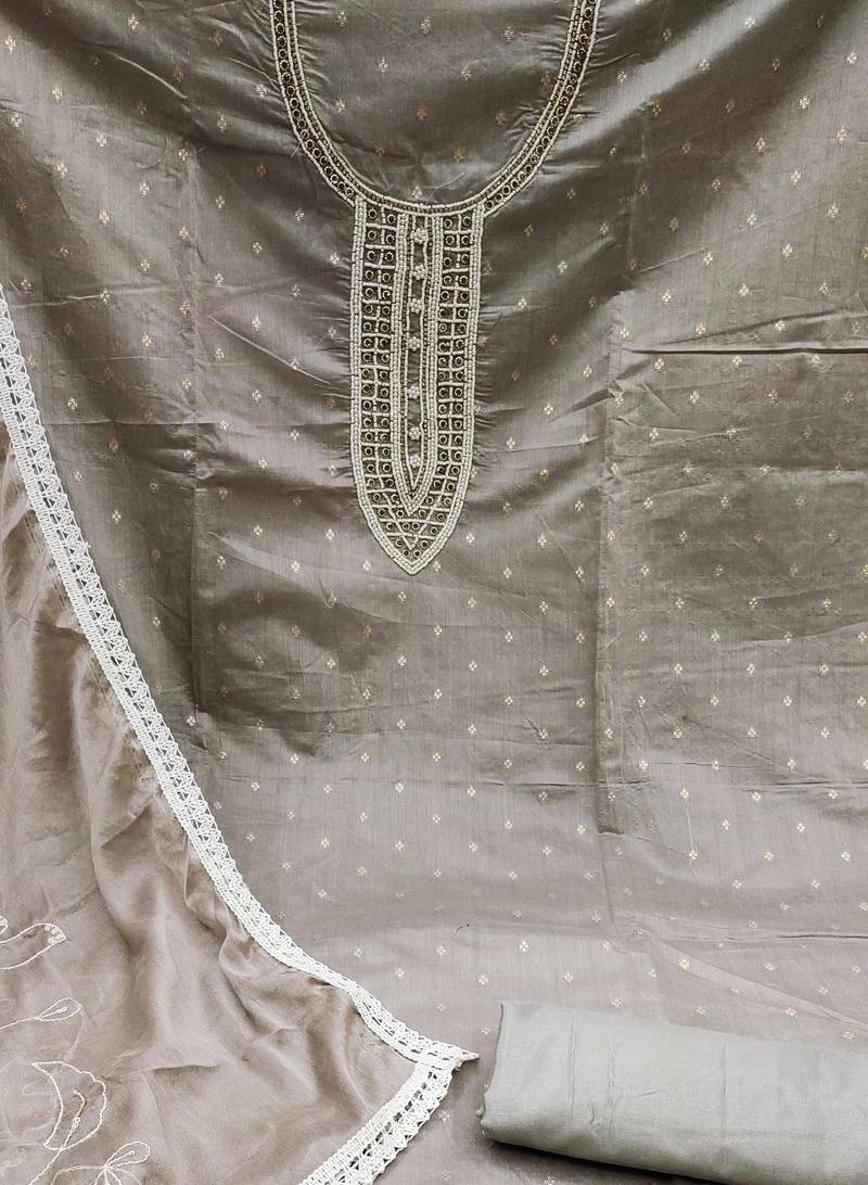 | Product Description | Fancy Hand Work And Weaving With Embroidered Dupatta Straight Style 1.95 Mtr Unstitched Dress Material Top Of Grey Colour Modal Cotton Fabric With 2 Mtr Santoon As Lining Inner Fabric Also Including 3.80 Mtr Unstitched Bottom Material Of Grey Colour Santoon Fabric With 2.05 Mtr Dupatta Of Grey Colour Nazneen Fabric |