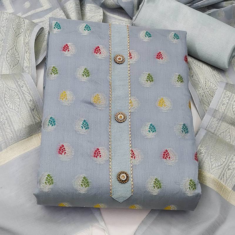 | Product Description | Weaving Straight Style 1.80 Mtr Unstitched Dress Material Top Of Grey Colour Banarasi Jacquard Fabric With Inner Lining Fabric Of Santoon Also Including 2.00 Mtr Chudidar Style Bottom Piece Material Of Grey Colour Santoon Fabric With 2.00 Mtr Dupatta Of Grey Colour Banarasi Jacquard Fabric |