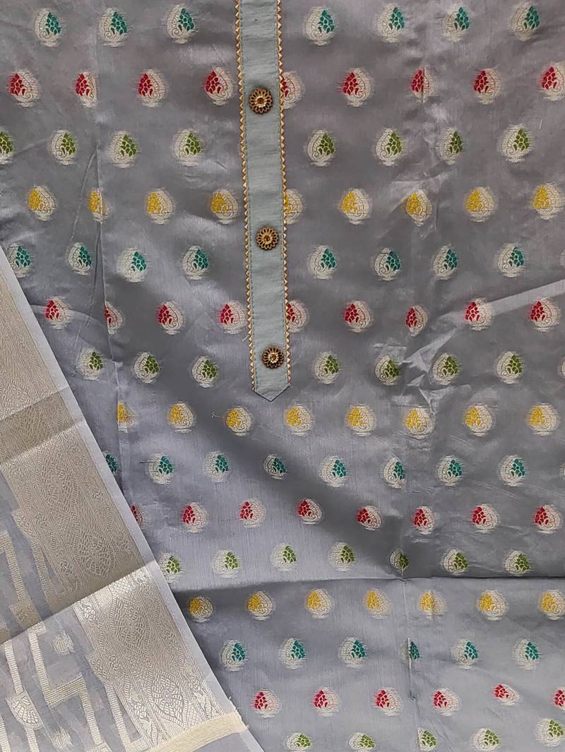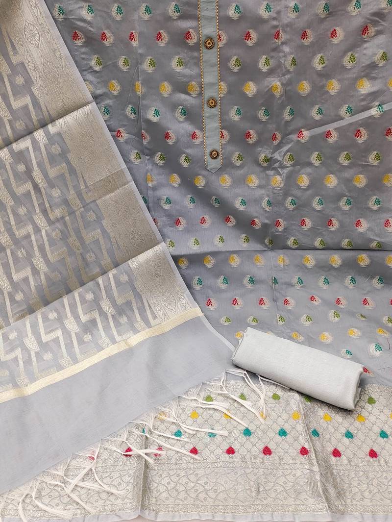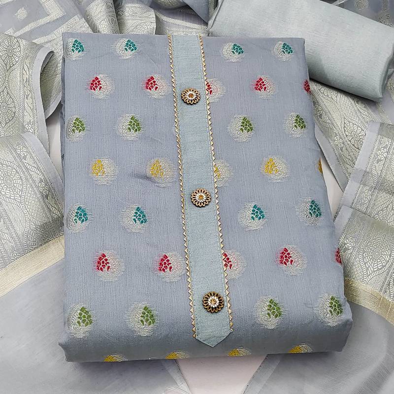 | Product Description | Weaving Straight Style 1.80 Mtr Unstitched Dress Material Top Of Grey Colour Banarasi Jacquard Fabric With Inner Lining Fabric Of Santoon Also Including 2.00 Mtr Chudidar Style Bottom Piece Material Of Grey Colour Santoon Fabric With 2.00 Mtr Dupatta Of Grey Colour Banarasi Jacquard Fabric |