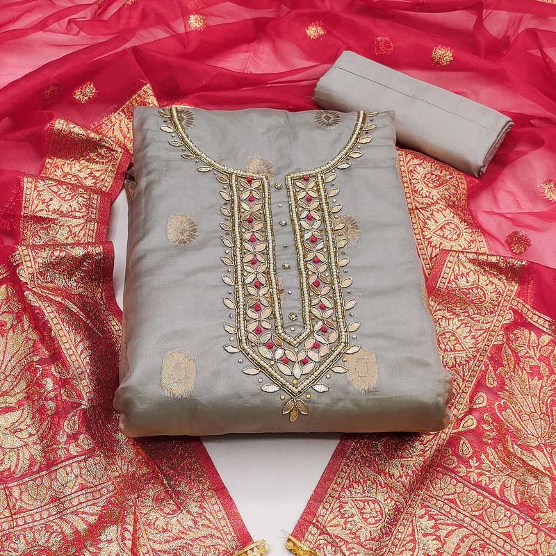 Grey organza woven dress material unstitched