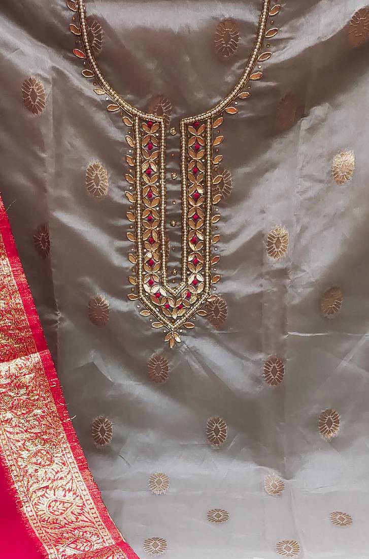 | Product Description | Handwork And Fancy Weaving Work With Banarasi Woven Work Dupatta Straight Style 1.95 Mtr Unstitched Dress Material Top Of Grey Colour Organza Jacquard Fabric With 2 Mtr Heavy Santoon As Lining Inner Fabric Also Including 3.80 Mtr Unstitched Bottom Material Of Grey Colour Heavy Santoon Fabric With 2.05 Mtr Dupatta Of Pink Colour Organza Jacquard Fabric |