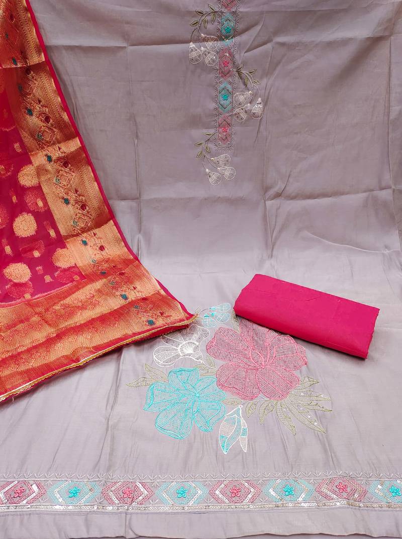 | Product Description | Fancy Heavy Thread Sequin Embroidery And Fancy Border With Banarasi Dupatta Straight Style 2.00 Mtr Unstitched Dress Material Top Of Levender Colour Roman Silk Fabric Also Including 2.40 Mtr Chudidar Style Bottom Piece Material Of Pink Colour Pure Cotton Fabric With 2.05 Mtr Dupatta Of Pink Colour Organza Banarasi Fabric |