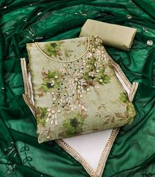 Light green banarasi hand embroidery dress material unstitched