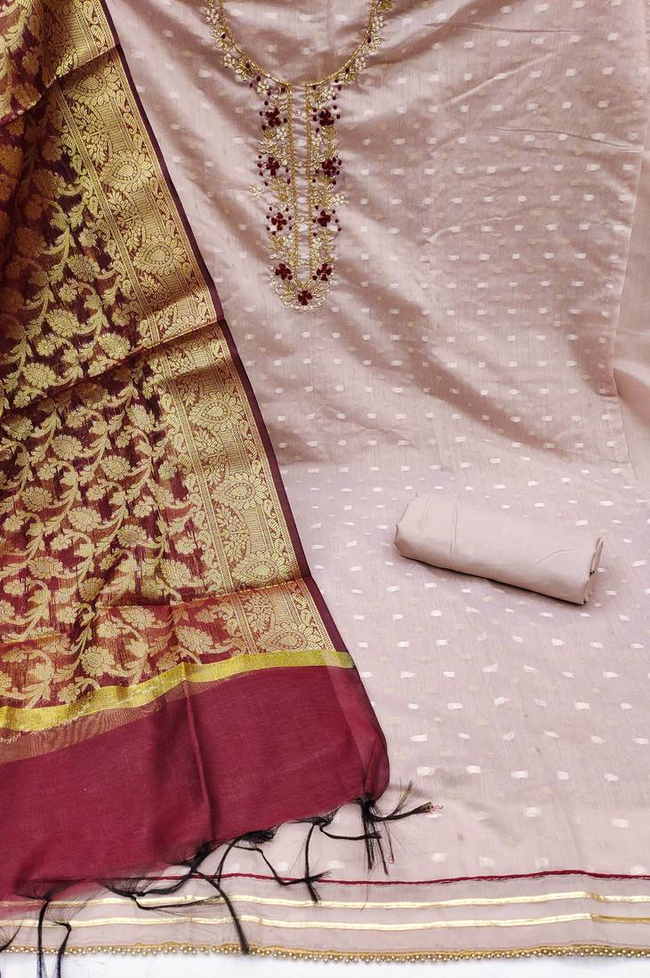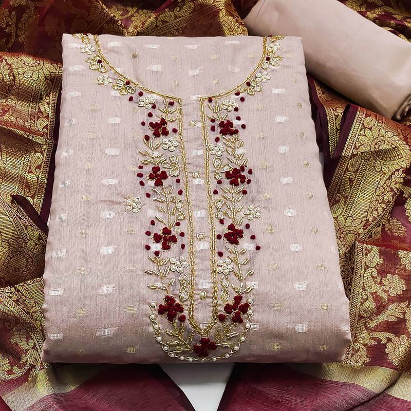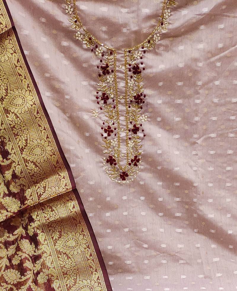 Light purple jacquard hand embroidery dress material unstitched
