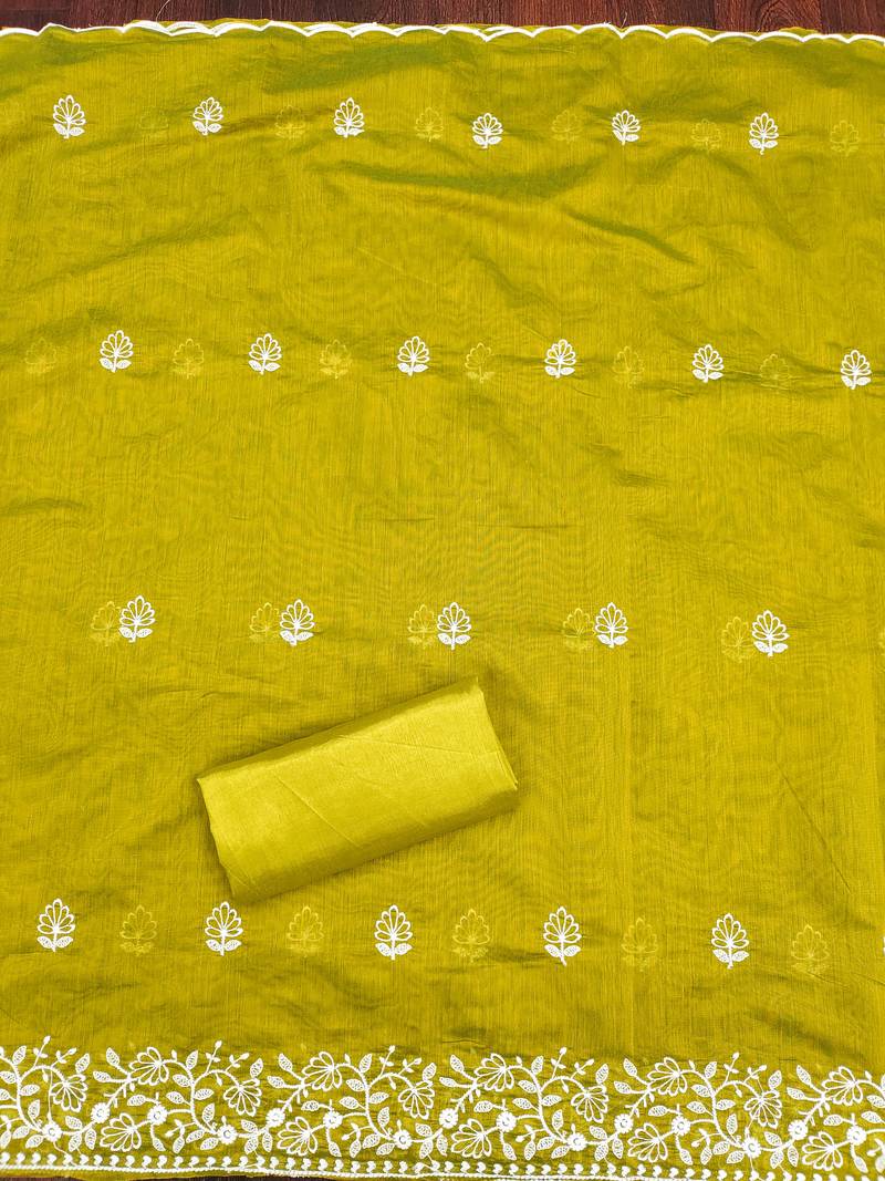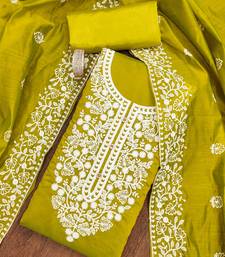 Lime cotton embroidered dress material unstitched